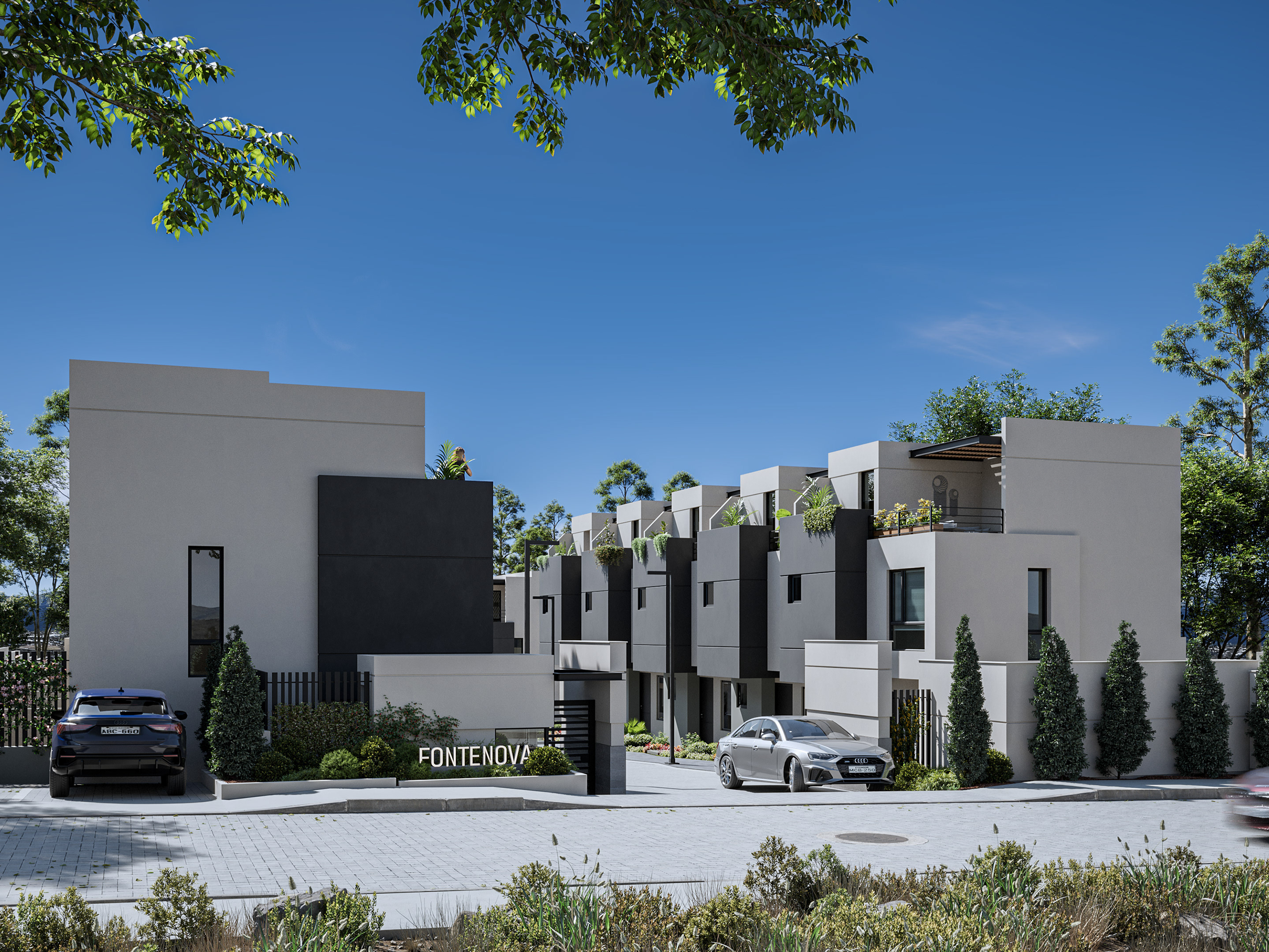 KUON RESIDENCIAS es un moderno conjunto de 13 unidades personalizadas de vivienda, su oferta desde los 150m2, cuenta con espacios introspectivos que proporcionan una nueva interpretación del concepto de “familia” destinado a las futuras generaciones de jóvenes que llegarán a experimentar el ambiente campestre a través de una conexión entre la luz y el silencio, con la demanda de áreas verdes privadas, por lo que cada casa cuenta con jardines desde los 40m2.